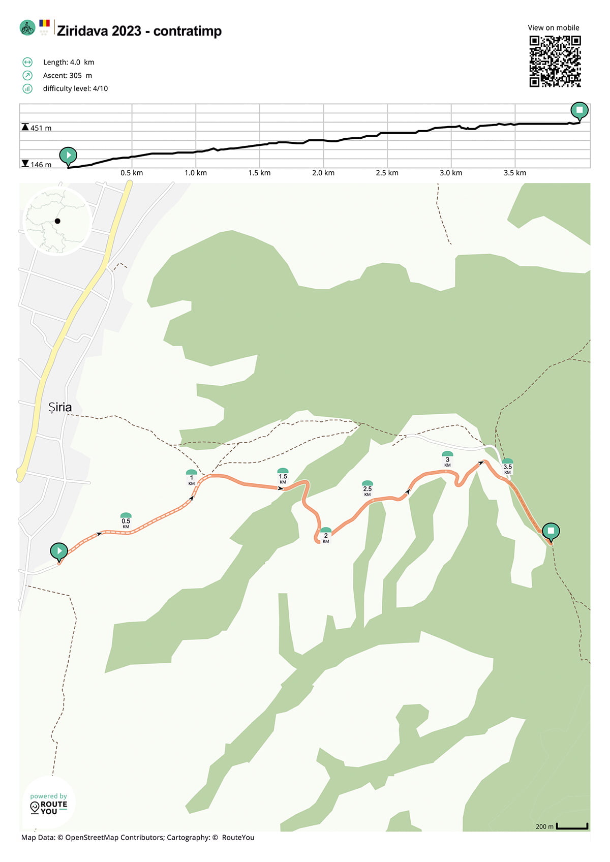 Competiția este individuală și va cuprinde două probe, una de contratimp (CTI) și una de fond.Proba de CONTRATIMP se va desfășura în 17 iunie 2023, de la ora 10:00 în localitatea Șiria, cu startul pe strada Locotenent Ciurdariu (urcarea spre Cetate) și finish după 4 km, în Vf. Curcubăta.